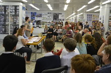 27.05.2014г На фоне выставке "Черное и белое" в городской Библиотеке им.Мусы Джалиля прошел мастер класс для учеников СОШ №10. Проводил преподаватель «ДХШ №1» Евграфова Игорь Петрович он познакомил учеников с «Разработкой каллиграммы ».