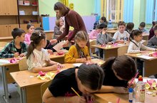 На этом занятии ребята изготовили праздничные открытки своими руками специально для своих любимых мам. Преподаватели Валерия Вячеславовна Попова и Алина Ильшатовна Аминова показали школьникам основные этапы подготовки бумаги, способы нанесения линии карандашом, рассказали об особенностях композиции и цветовых сочетаний.
