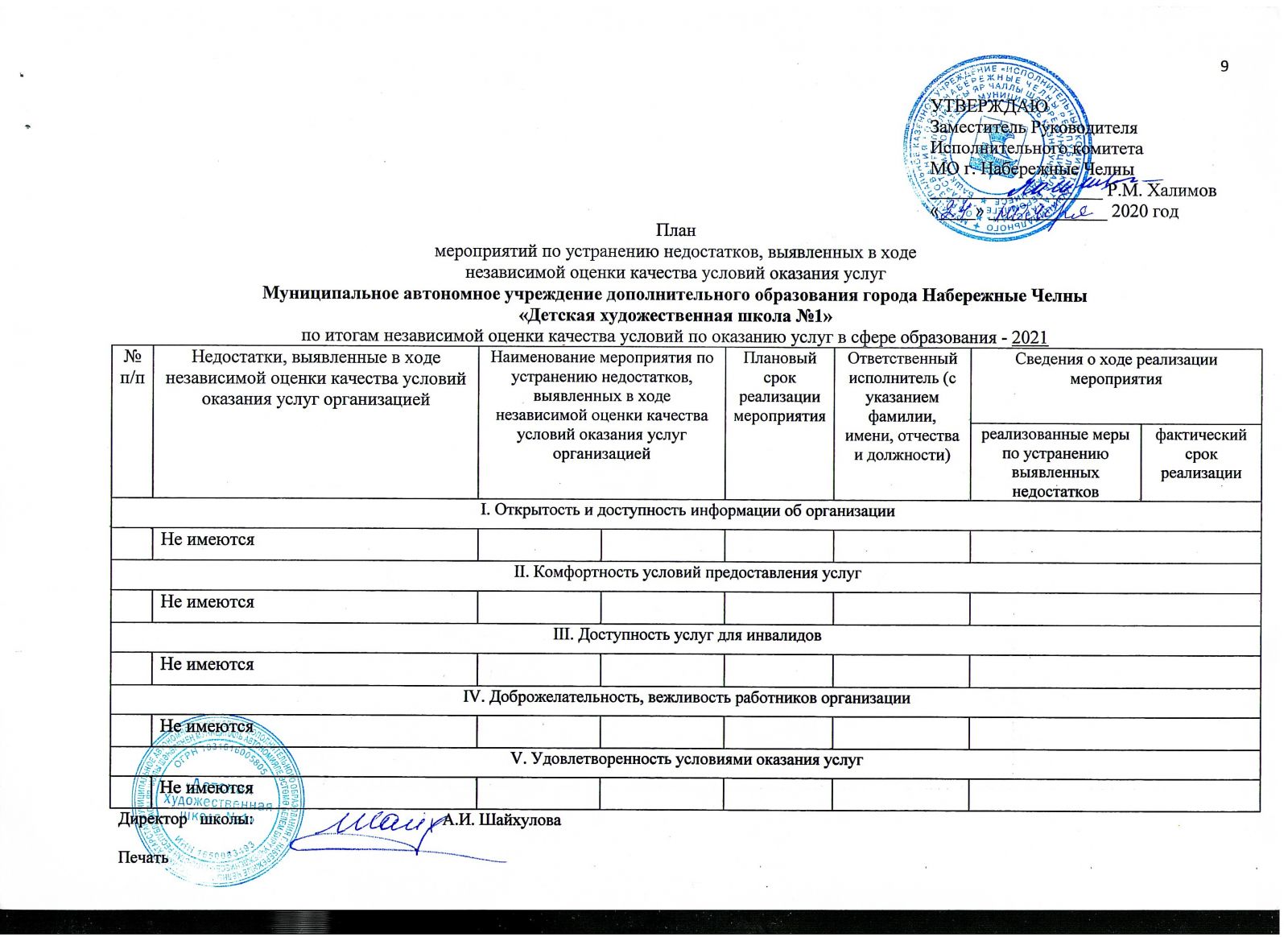 План мероприятий по устранению недостатков ДХШ№1 - 2020