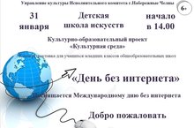 31 января в рамках культурно-образовательного проекта «Культурная среда», коллектив Детской школы искусств приглашает на беседу-концерт под названием «День без интернета». -