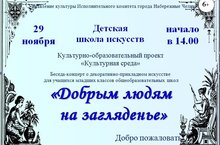 29 ноября в рамках культурно-образовательного проекта «Культурная среда», коллектив Детской школы искусств приглашает на беседу-концерт о декоративно-прикладном искусстве. -