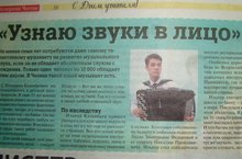 В газете «Вечерние челны» от 30 сентября 2015 г. опубликован материал «Узнаю звуки в лицо», посвященный одному из наших учеников Казанбаеву Ильнуру. В нем корреспондент Наталья Галиева пишет о том, как баянист пришел в мир музыки, и его планах на будущее. -