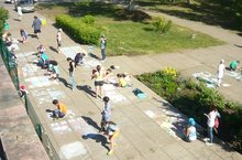 Стало уже традицией превращать в первый день каникул школьный двор в огромное художественное полотно. В этот день все желающие, вооружившись цветными мелками, рисуют на асфальте. -