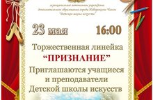 Приглашаем учащихся и преподавателей нашей школы на торжественную итоговую линейку «Признание», которая состоится 23 мая в 16.00.