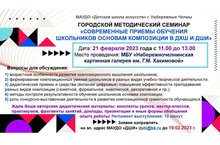 Приглашаем методистов, преподавателей школ искусств и художественных школ, а также педагогов учреждений дополнительного образования на Городской методический семинар «Современные приемы обучения школьников основам композиции в ДХШ-ДШИ», в рамках юбилейной выставки нашей школы.