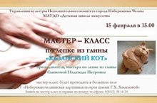 Не пропустите! 15 февраля в 15.00 мастер-класс от преподавателя художественного отделения Сынковой Надежды Петровны по лепке из глины «Казанский кот».