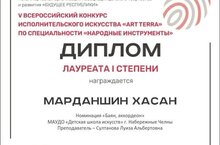 Учащийся музыкального отделения по классу баяна Марданшин Хасан принял участие в V Всероссийском конкурсе исполнительского искусства «ART terra».