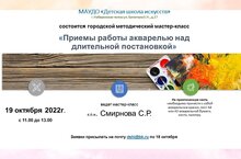 Уважаемые преподаватели дополнительного образования, ДХШ и ДШИ, художественных студий и т.п. Приглашаем вас принять участие в городском методическом мастер-классе «Приемы работы акварелью над длительной постановкой» к.п.н., заведующей художественным отделением школы Светланы Раисовны Смирновой.