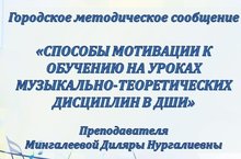 Уважаемые преподаватели теоретических дисциплин школ искусств, приглашаем вас принять участие в городском методическом семинаре «Способы мотивации к обучению на уроках музыкально-теоретических дисциплин в ДШИ» преподавателя Диляры Нургалиевны Мингалеевой. Методическое сообщение состоится 19 октября 2022 года в 10:30 в МАУДО «Детская школа искусств».