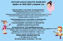 Детская школа искусств объявляет приём на новый 2022-2023 учебный год.