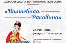 Ждём 30 и 31 октября в 10:00 и 14:00 учащихся 1-4 классов на кукольный спектакль "Волшебная раковина" (по мотивам китайской народной сказки). Продолжительность: 50 мин. Заявки принимаются заранее! Телефон для справок: 39-90-66