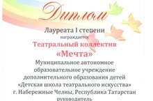 Детская школа театрального искусства была награждена Дипломом управления культуры Исполнительного комитета города 09.09.2014