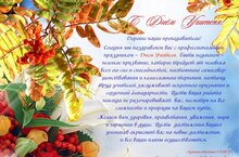 Сегодня мы поздравляем вас с профессиональным праздником – Днем Учителя. Быть педагогом – нелегкое призвание, которое требует от человека всех его сил и способностей, постоянного самосовершенствования и колоссального терпения, поэтому труд учителей заслуживает искреннего признания и сердечной благодарности. Пусть ваша работа никогда не разочаровывает вас, несмотря на все сложности и преграды на вашем пути.