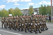 Студенты Технического колледжа в форме пограничных войск приняли участие в параде. -