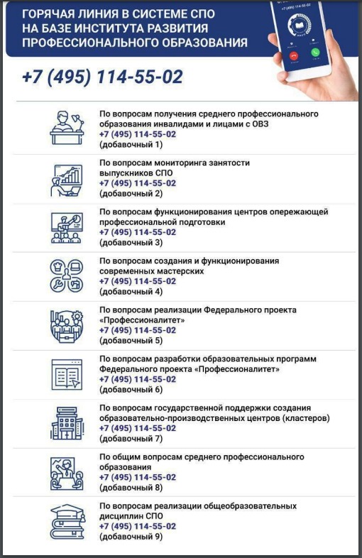 Опубликовано: 04.06.2022Телефоны горячих линий системы среднего профессионального образования
