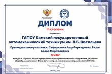 Государственное автономное профессиональное образовательное учреждение "Камский государственный автомеханический техникум имени Л.Б.Васильева"/«Л.Б. Васильев исемендәге Кама дәүләт автомеханика техникумы» дәүләт автоном һөнәри белем бирү учреждениесе