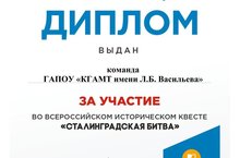 13 февраля 2017 года активисты клуба «Мои Челны» ГАПОУ «Камский государственный автомеханический техникум имени Л. Б. Васильева» (Курочкина Елена и Полтанова Елизавета) в рамках Всероссийского молодёжного мероприятия организовали для студентов 1-го курса исторический квест «Сталинградская битва». За трансляцию патриотических ценностей в призме указанного квеста команда нашего техникума была отмечена дипломом за участие