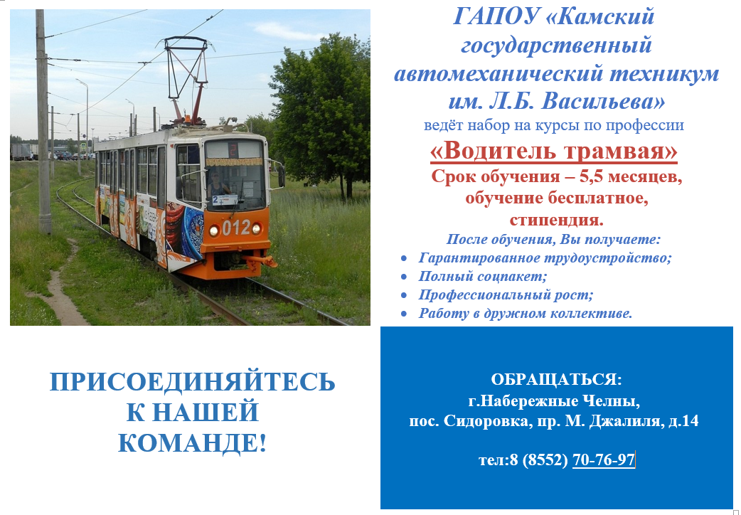 ведётся набор на курсы по профессии «Водитель трамвая»