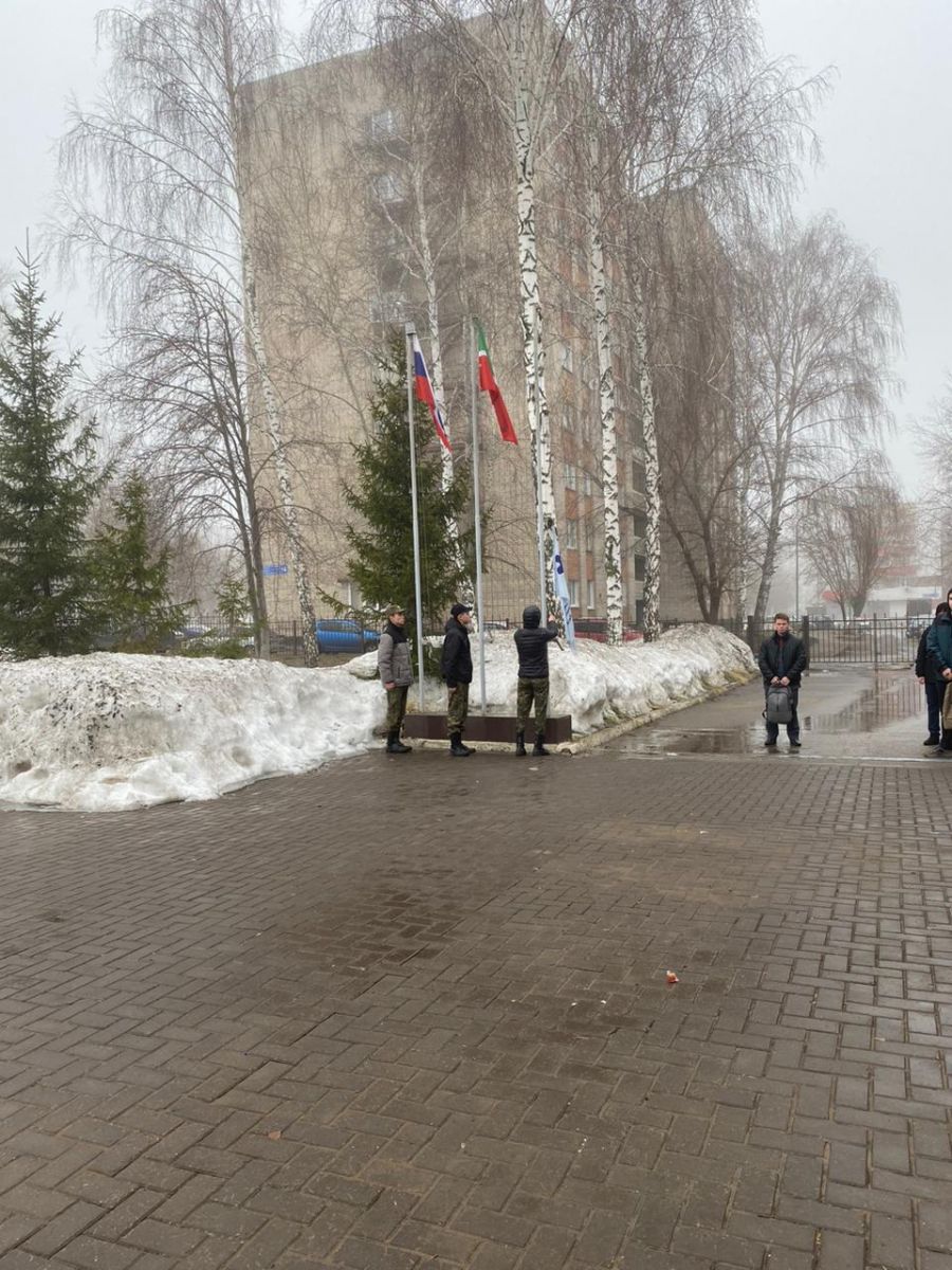 Опубликовано: 01.04.2024Сегодняшний день в нашем техникуме начался с традиционного мероприятия - поднятия флагов Российской Федерации, Республики Татарстан и нашего учебного заведения.