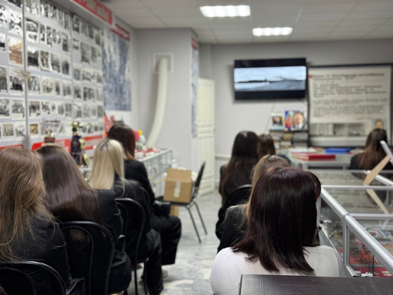 Заведующая музеем Галина Аркадьевна провела увлекательное занятие для студентов, где они, посмотрев документальный фильм, побывали в известных музеях мира, погрузились в удивительный мир истории и культуры.