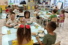 Правильное питание - залог здоровья. Дети дошкольного возраста усиленно растут и развиваются. Чтобы питание приносило пользу, оно должно быть сбалансированным и здоровым. В рационе ребенка основа - мясо, рыба, молочные продукты, макароны, крупы, хлеб, овощи и фрукты. Обед - самая важная трапеза, которая состоит из полноценного первого, второго с гарниром, салата из овощей и третьего блюда. Меню в детском саду всегда разнообразно, и даже супы в течении недели не повторяются. Дети всё кушают с большим аппетитом.