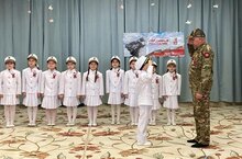 Воспитанники детского сада подготовили для гостя концерт – пели песни, читали стихи и продемонстрировали выступление команды «Честь» юных моряков, участников смотра строя и песни. Команда, сдав рапорт главнокомандующему, промаршировала и спела песню. В завершении от имени воспитанников детского сада – командир команды «Честь» подарил Марселю Хакимову георгиевскую ленточку.