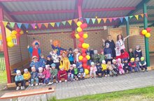 Сегодня большой праздник для детей. Веселые и заводные клоуны Забияка и Смешинка совместно со Лесовичком и Солнышком, поднимали всем настроение. Для ребят были организованы танцы, музыка, конкурсы, воздушные шары и конечно же подарки для всех воспитанников.