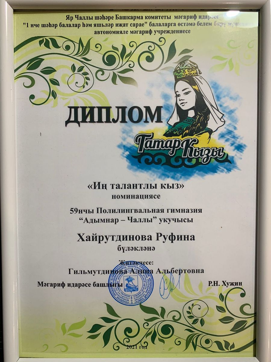 Муниципальное бюджетное общеобразовательное учреждение «Полилингвальная гимназия № 59 «Адымнар-Чаллы»/ "59 нчы күп телле гимназия "Адымнар-Чаллы" муниципаль бюджет гомуми белем бирү учреждениесе