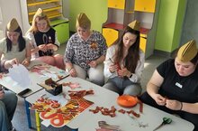 Как дань уважения участникам ВОВ Георгиевскую ленту принято носить в период майских праздников. Повязывают ее разными способами. Один из них – в виде броши. Мастер-класс по изготовлению такой броши провела Рамзия Хайруллина с педагогами. В процессе воспитатели создали 100 штук праздничного атрибута