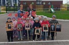 Детишки серьезно и бережно держали в руках портреты родственников - участников Великой Отечественной войны.