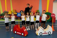 В игровой форме с месте с персонажем Карлосоном дошколята закрепили основные знания о дорожной безопасности, правила поведения на дороге.