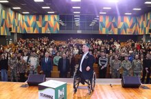 Сегодня в нашем Центре образования прошла интересная встреча с Талай Алексеем. Алексей Константинович Талай - известный белорусский общественный деятель, мотивационный спикер, спортсмен-параолимпиец и многодетный отец. В 16 лет он подорвался на мине времен Второй мировой войны, лишившись рук и ног. Несмотря на это, он стал мастером спорта по плаванию, рекордсменом мира и Европы, основателем благотворительного фонда и вдохновляет людей по всему миру. Мероприятие посетили участники СВО, студенты, педагоги, спортсмены и волонтеры со всего Татарстана. Спикер поднял вопросы нравственности, саморазвития и патриотизма. Алексей Константинович показал на своем примере что каждый человек сам выбирает и создает свою жизнь. В конце встречи слушатели задали интересующие вопросы, и получили очень развернутые ответы.
