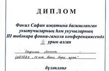 27 нче гыйнварда 55 нче урта гомуми белем бирү мәктәбендә Факил Сафин иҗатына багышланган укытучылар һәм укучыларның III төбәкара фәнни-гамәли конференциясендә 3 урын алган 7А сыйныфы укучысы Сафина Лиананы һәм җитәкчесе Гөлназ Шамгуновнаны чын күңелдән котлыйбыз. Аларга иҗади уңышлар телибез.