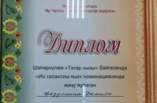 Бүген, 3 нче апрельдә, "Эврика" мәдәният үзәгендә шәһәркүләм "Татар кызы -2024" бәйгесенең финалы үтте. Бу бәйгедә 5-8 нче сыйныф укучылары катнашты. 25 катнашучыдан 9 ы финалга үтте. Шәһәркүләм "Татар кызы" бәйгесендә "Иң талантлы кыз" номинациясендә 5 нче "А" сыйныфы укучысы Фазуллина Дамилә җиңү яулады. Дамиләне чын күңелдән котлыйбыз. 16 нчы белем бирү үзәге администрациясе җиңүче укучы әзерләгән Хаметгатина Алсу Мәүлемҗан кызы һәм Мортазина Фәния Кирамовнага, Дамиләнең әнисе, әби-бабасына рәхмәт белдерә.