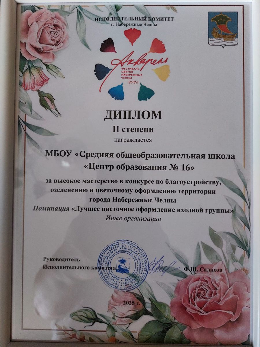 Наша школа заняла второе место в номинации "Лучшее цветочное оформление входной группы" в конкурсе по благоустройству, озеленению и цветочному оформлению территории города Набережные Челны. Поздравляем!