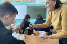 Тема занятия: «Определение выталкивающей силы, действующей на погружённое в жидкость тело». Ребята не просто изучали теорию, а на практике выясняли, почему одни предметы тонут, а другие уверенно держатся на плаву. С помощью лабораторного оборудования ученики проводили эксперименты, делали замеры и самостоятельно вычисляли ту самую силу Архимеда.