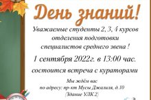1 сентября - День знаний отделение подготовки специалистов среднего звена 29.08.2022