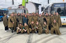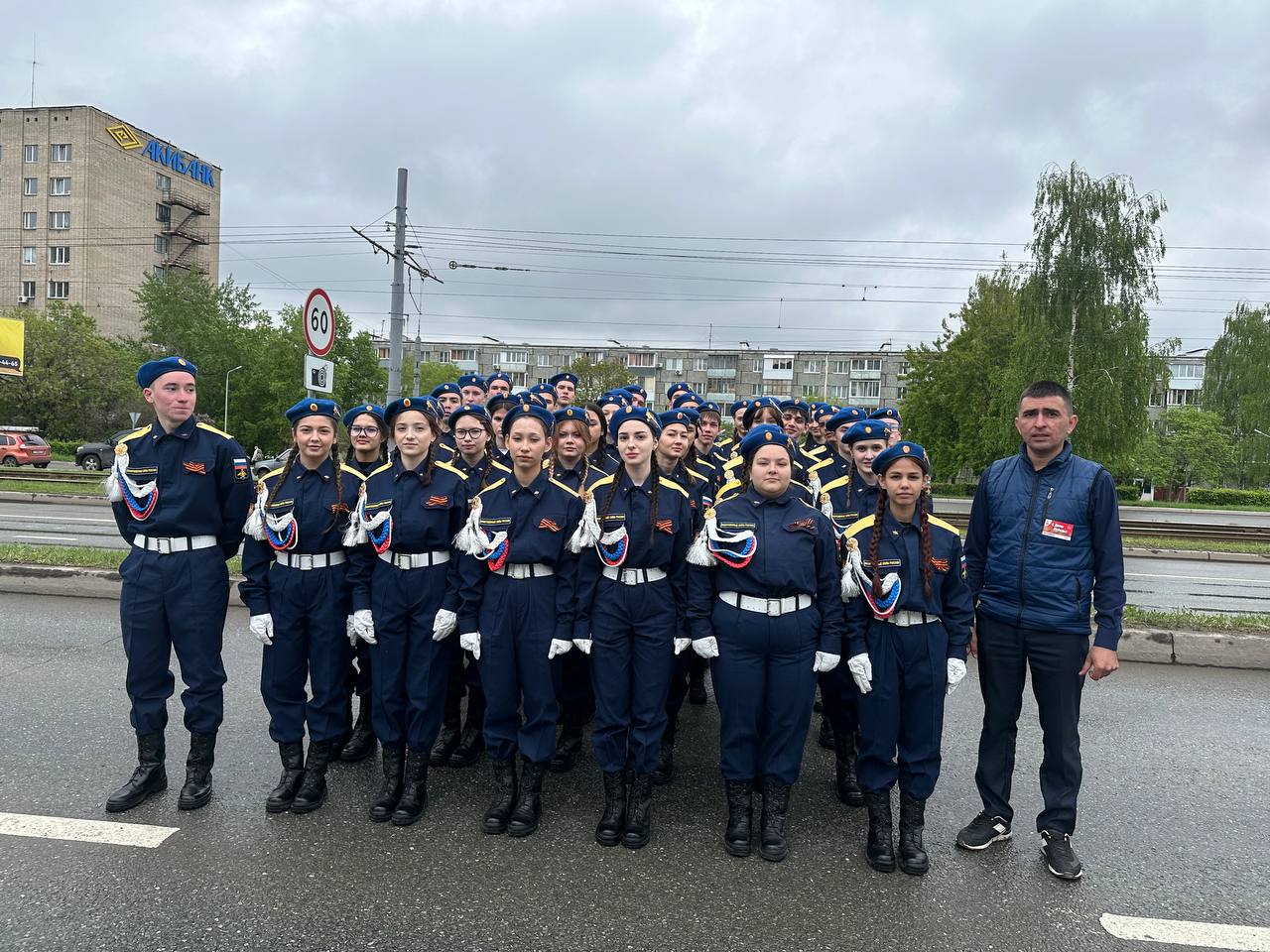 Студенты, в форме Военно-космических войск, приняли активное участие в торжественном марше Победы на главной площади города.