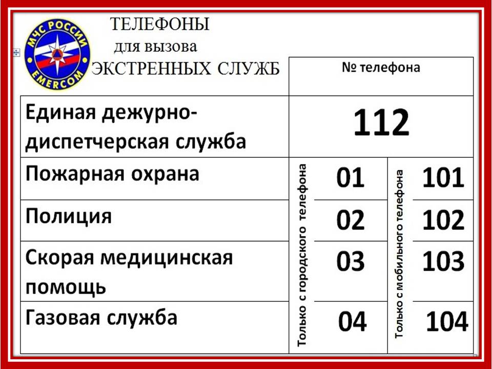 ТЕЛЕФОНЫ ЭКСТРЕННЫХ СЛУЖБ