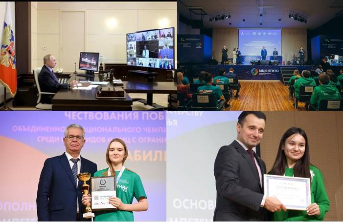 Вторая часть мероприятия стала особенно волнительной – была организована онлайн-встреча с Президентов РФ В.Путиным. Президент поддержал идею дальнейшего развития движения «Абилимпикс», отметив, в частности, необходимость расширения творческих компетенций.