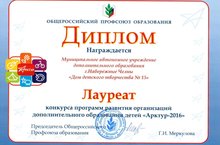Программа развития ДДТ № 15 - лауреат Всероссийского конкурса АРКТУР - 2016 27.03.2016