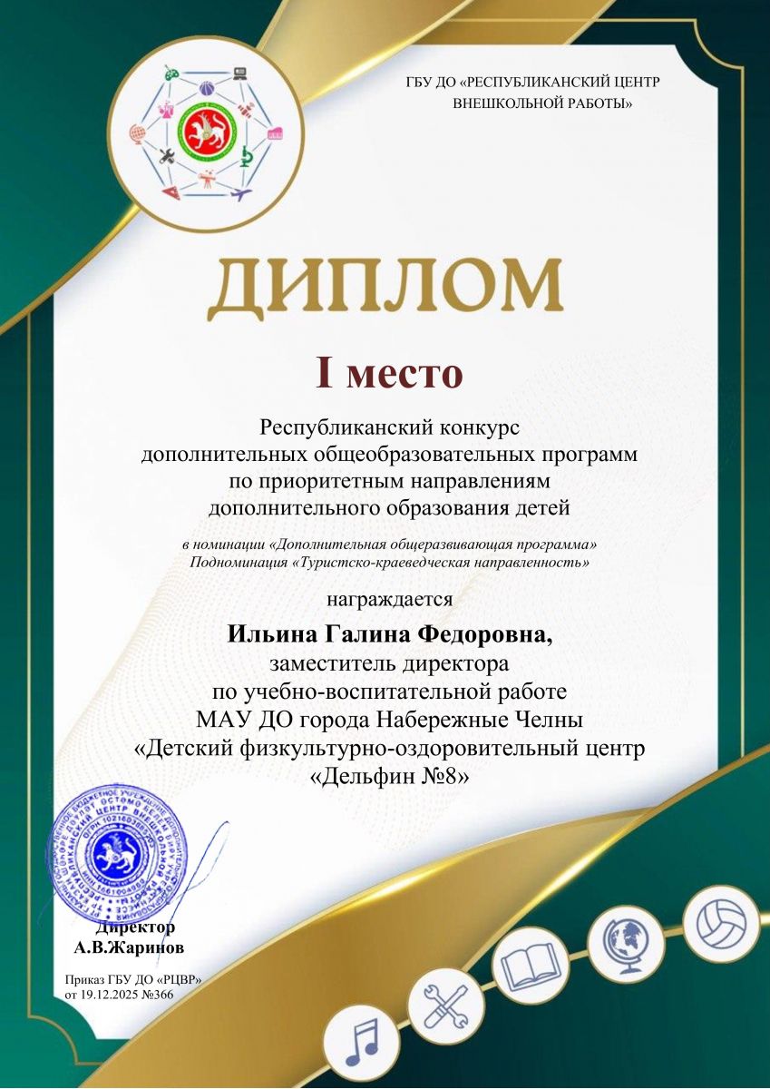 - Ильина Г.Ф. - 1 место, Дубовая М.М. - 1 место в Республиканском конкурсе дополнительных общеобразовательных программ по приоритетным направлениям дополнительного образования детей. (Приказ от 19.12.2025 № 366)
