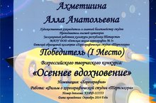 I место во Всероссийском творческом конкурсе для детей и педагогов
