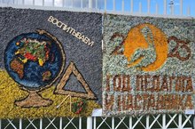 В нашем городе есть красивая традиция – в День Республики проводится Фестиваль цветов «Акварель». Не исключением стал и этот год. Не остались в стороне от Фестиваля и педагоги города. Умельцы создали из подручных материалов настоящие произведения искусства. Гости праздника рассматривали представленные панно и с удивлением узнавали цветы и растения, мимо которых ходят каждый день.