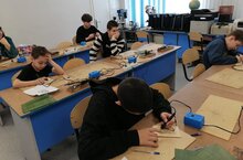 Декоративное выжигание по дереву - древнейшее ремесло, возникшее и развивавшееся параллельно с точением, резьбой, морением и другими видами обработки древесины. С появлением бытовых электрических пирографов техника нанесения изображения значительно упростилась, сделавшись доступной даже для школьников. Мастер-класс по пирографии провел педагог Центра Нуруллин Р.Н. для учащихся "Асылташ". Ребята познакомились со сложной, но очень интересной техникой выжигания.