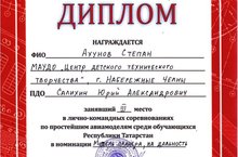 04.03.2018 года в городе Альметьевск прошли лично-командные соревнования по радиоуправляемым автомоделям среди обучающихся РТ.Обучающиеся Центра заняли призовые места:Абдуллин Ильнар - 1 место,Юнусов Азат - 2 место,Обросов Степан - 2 место,Ретивых Никита - 2,3 места,команда ЦДТТ №5 - 2 и 3 места.Также грамотами Министерства образования РТ были награждены педагог: Абрамов Е.Ю. за 1 место, а также Фаттахов И.Р., подготовивший команду призеров. -