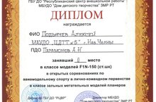 Поздравляем Подьячева Алексея, занявшего II место в классе моделей FIN-150.