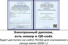 Электронный диплом для Приемных комиссий вузов,выдаваемый РСОШ. Он имеет номер и QR-code. Будет доступен на сайте РСОШ для скачивания в конце июня 2026 г. по ссылке http://rsr-olymp.ru/
