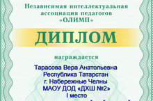Поздравляем преподавателя Тарасову Веру Анатольевну, ставшую участником и победителем Всероссийской заочной научно-практической конференции «Роль учителя в формировании будущего поколения», организованной независимой интеллектуальной ассоциацией педагогов «ОЛИМП» 13.04.2015