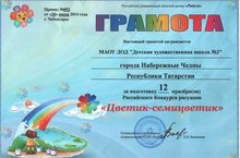 Школа награждается грамотой за подготовку 12 призера(ов) Российского Конкурса рисунков "Цветик-семицветик" 10.07.2014